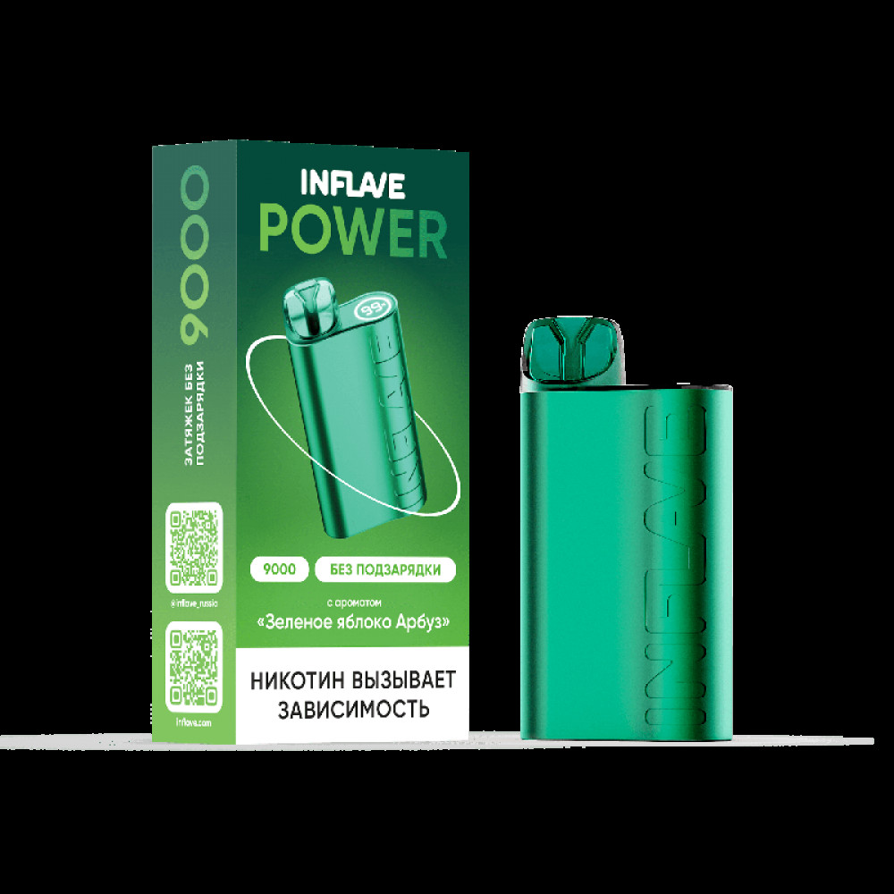 Электронная сигарета INFLAVE POWER 9000 затяжек Зеленое Яблоко Арбуз - купить в Кропоткине